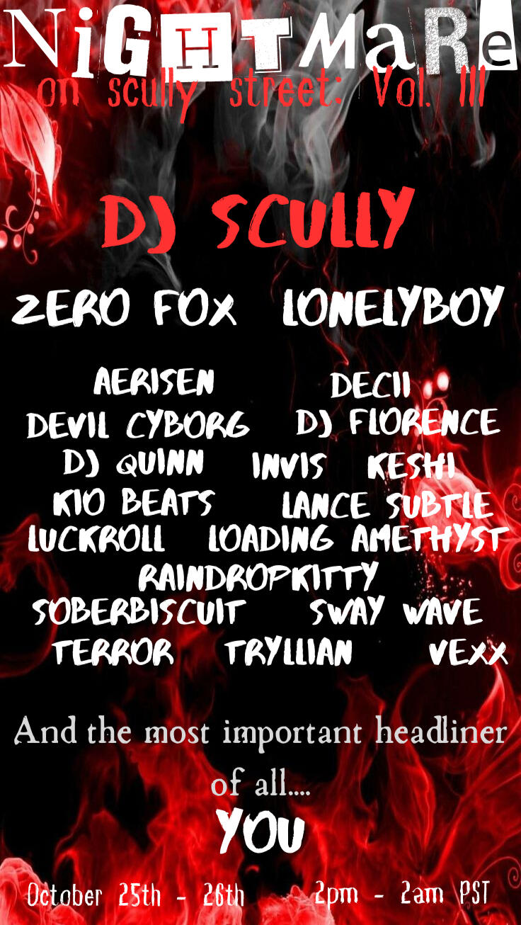Since 2022, homies from all walks of life have come together over a shared love of dark EDM. The culture has evolved from just a few homies enjoying music to a collective of DJs, hand-picked by Scully himself.The lineup has evolved, featuring friends old and new alike. Join us for Volume 4, where we take to the skies.