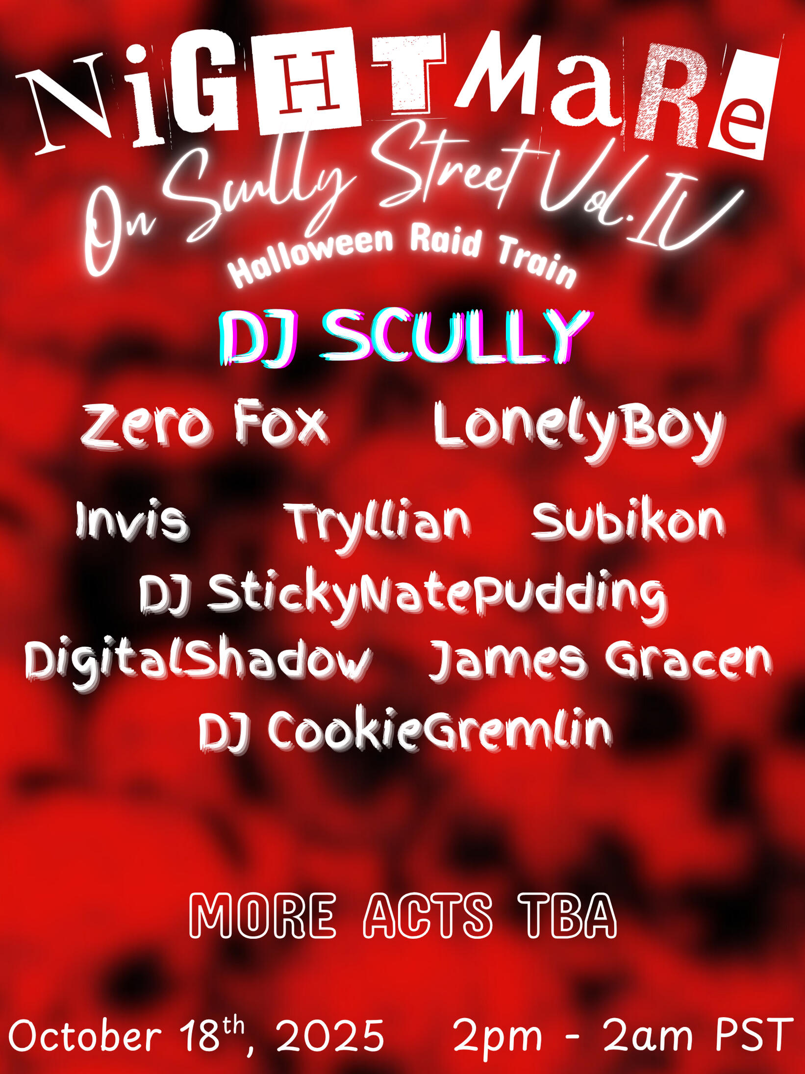 Since 2022, homies from all walks of life have come together over a shared love of dark EDM. The culture has evolved from just a few homies enjoying music to a collective of DJs, hand-picked by Scully himself.The lineup has evolved, featuring friends old and new alike. Join us for Volume 4, where we take to the skies.